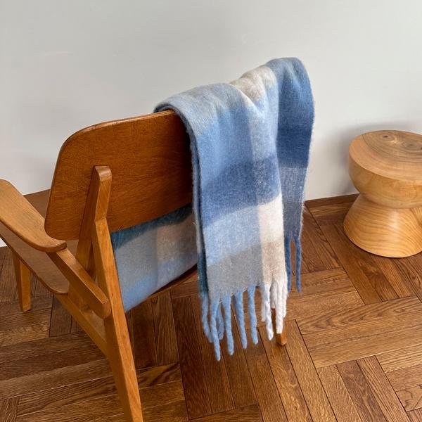 落ち着いた青を基調としたチェック柄が、冬のシーンにぴったりのアイテムとなっています。