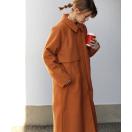 鮮やかなオレンジのロングコートはウール100%使用で型崩れしづらい素材になりますので、お手入れしながら長く使えるコートです!