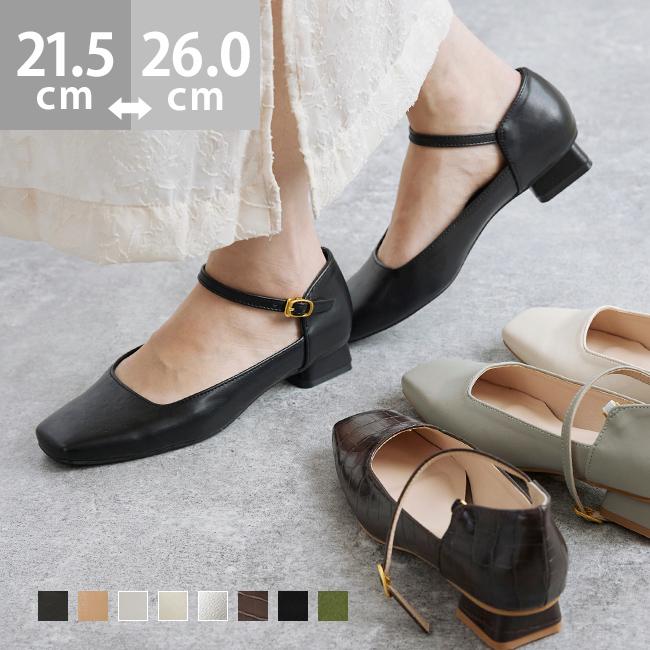 商品名:スクエアトゥ ストラップ 変形ヒール パンプス