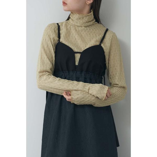 ① 異素材のコントラストが上品なワンピース