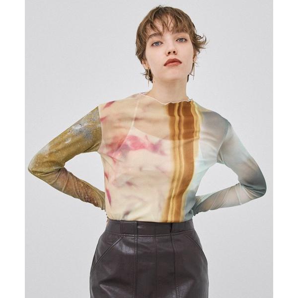 ベージュのプリント柄のカットソーのブランドは「PUBLIC TOKYO(パブリックトウキョウ)」
