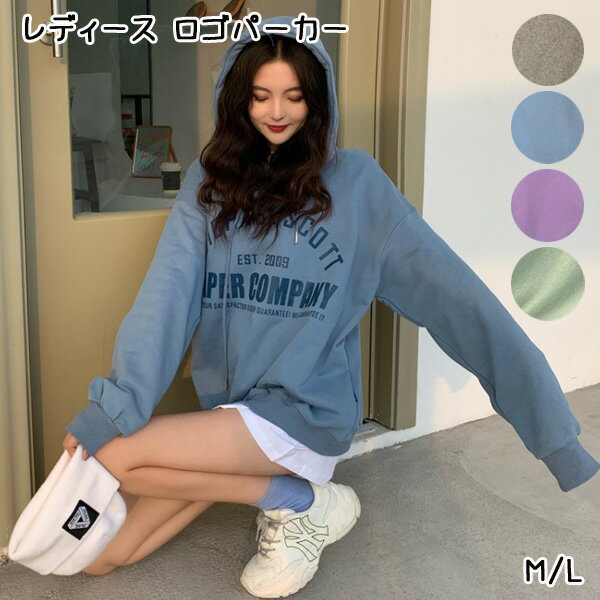 続いて2着目は、淡いカラーが可愛らしいシンプルなロゴパーカー。