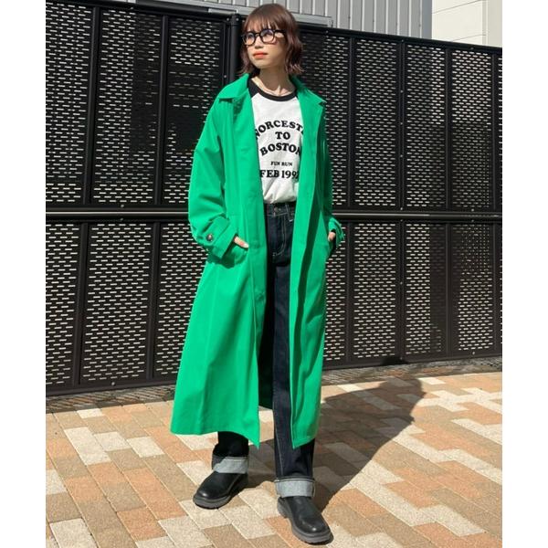 トレンチコートだけど、かっちりしすぎていなくて、斜めがけの黄色のポーチで、全体的にかわいい雰囲気になっています。