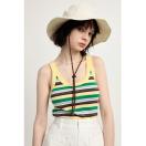 8話ではパフスリーブのトップス、最終回ではイエローのメッシュトップスとインナーのタンクトップを着用しています。